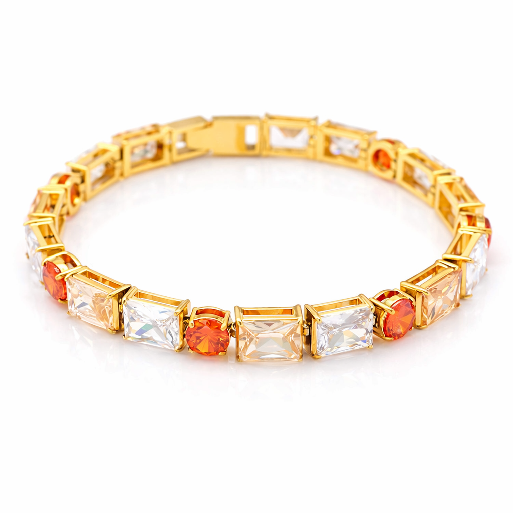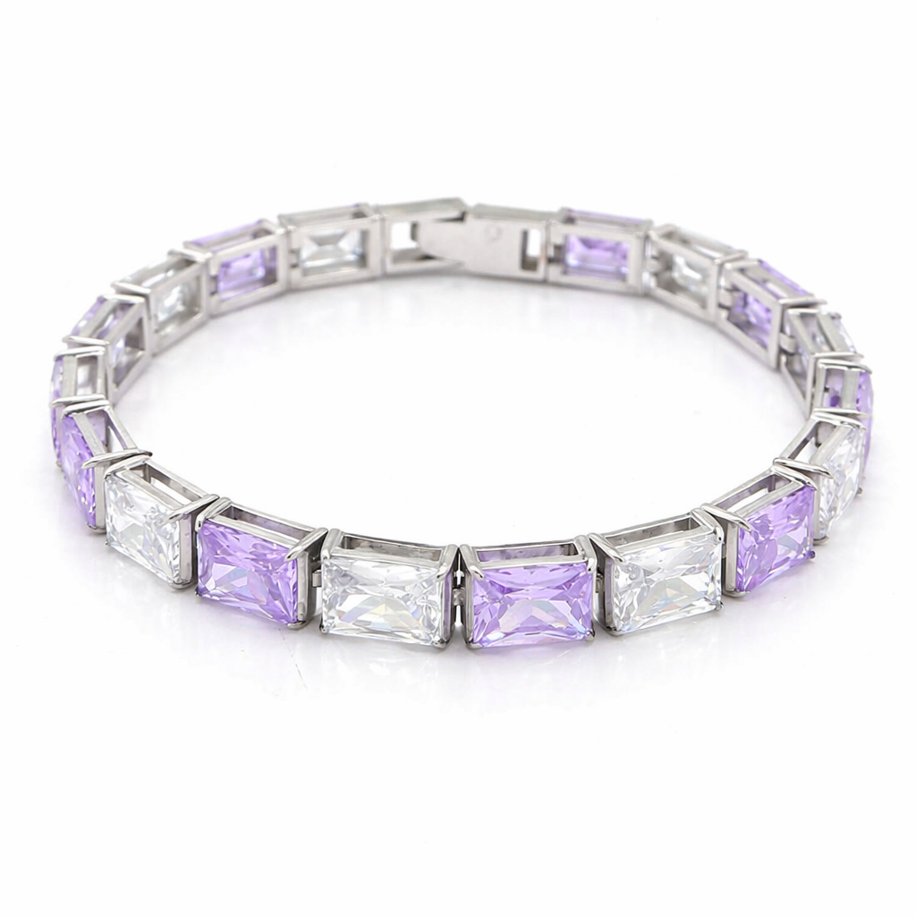 Stainless Steel Multicolored Square and Round - Cut Crystal Tennis Bracelet