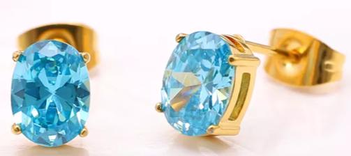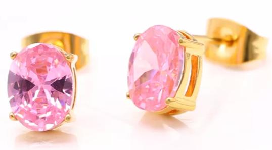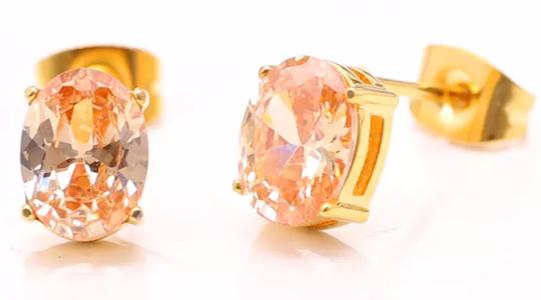 Oval Pink CZ Stud Earrings in Gold Plated Stainless Steel