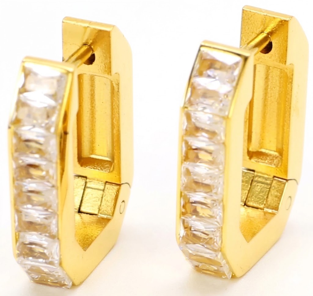 Stainless Steel Geometric Hoop Earrings with 5A Zircon