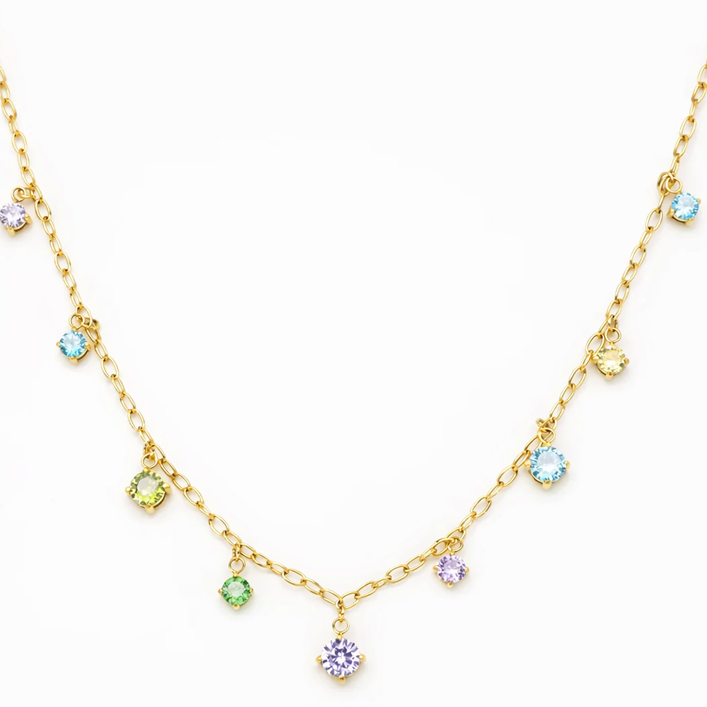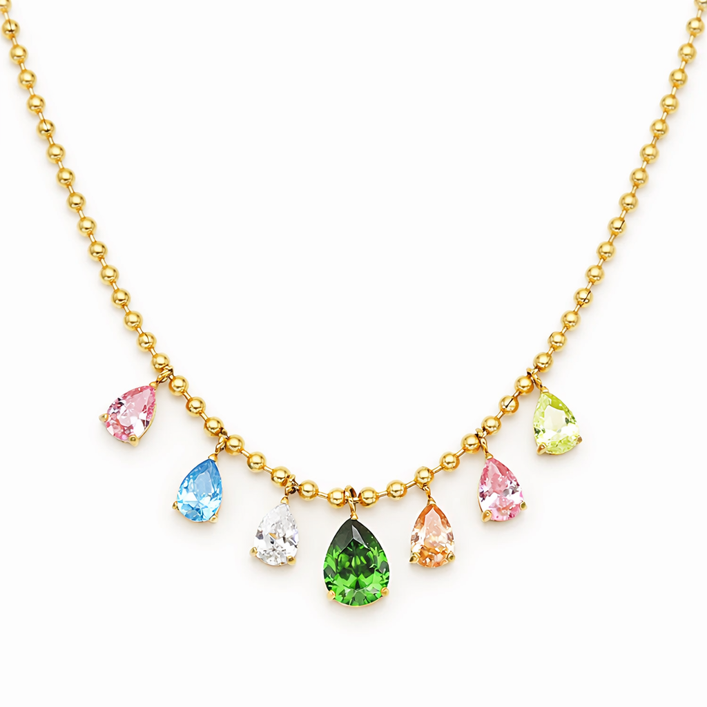 Stainless Steel Pendent Necklace With Colorful Zircon