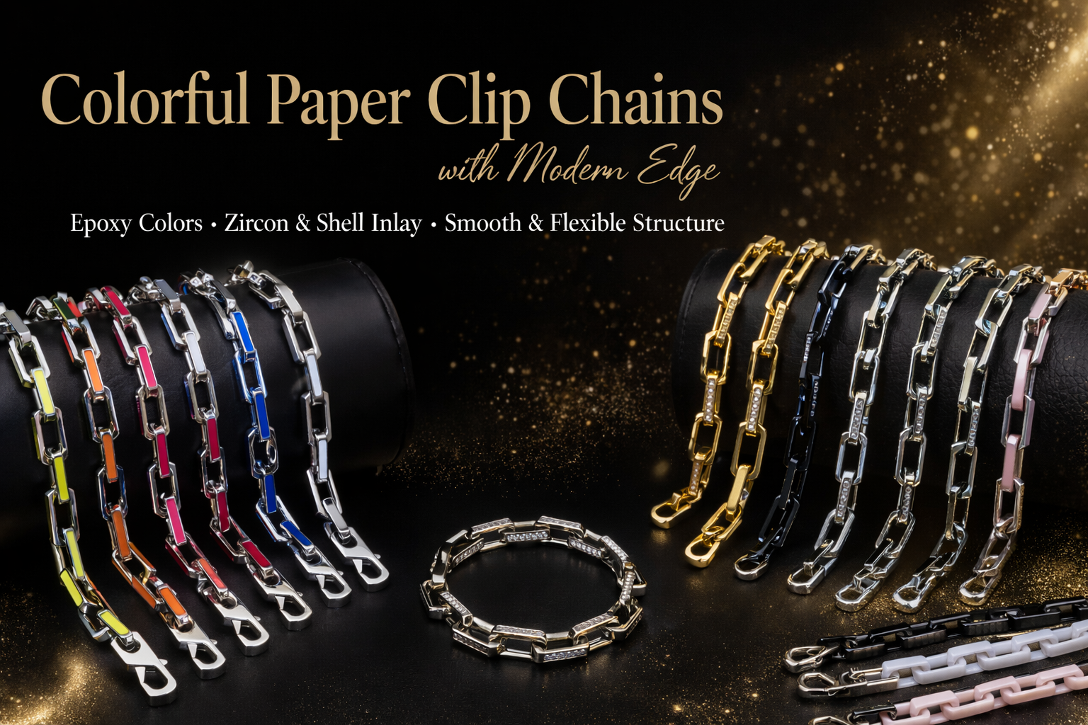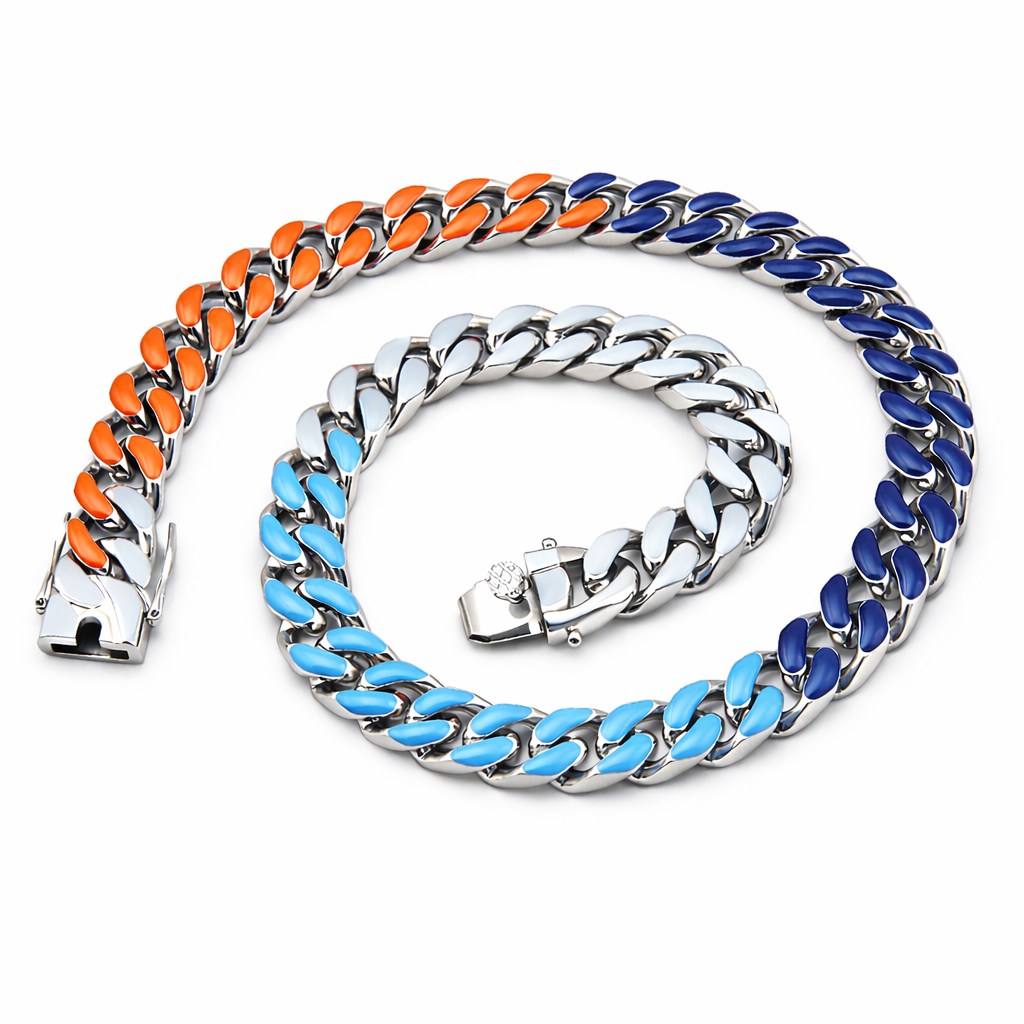Stainless Steel Cuban Link Chains with Epoxy Finish in Orange, Light Blue and Dark Blue