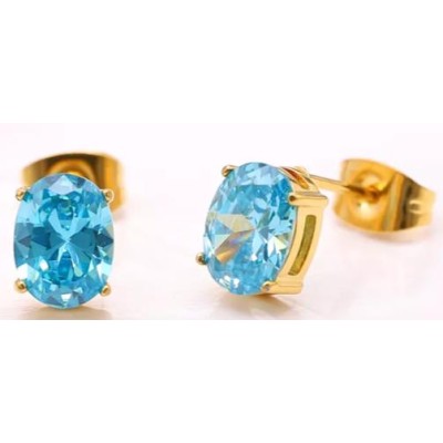Oval Pink CZ Stud Earrings in Gold Plated Stainless Steel