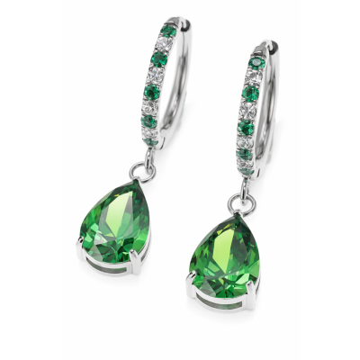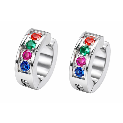 Stainless Steel Silver Water Drop Earring With Mix Color Zircon
