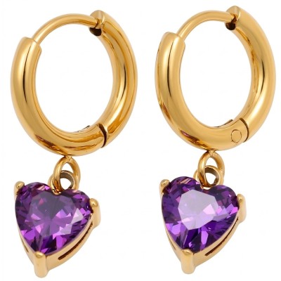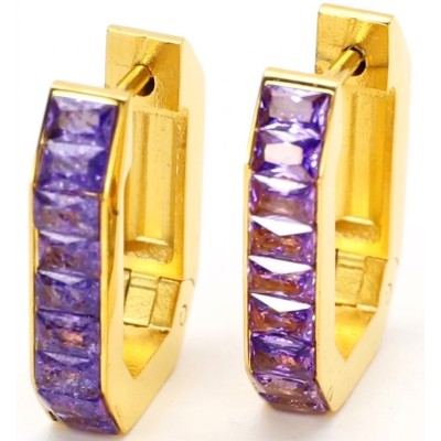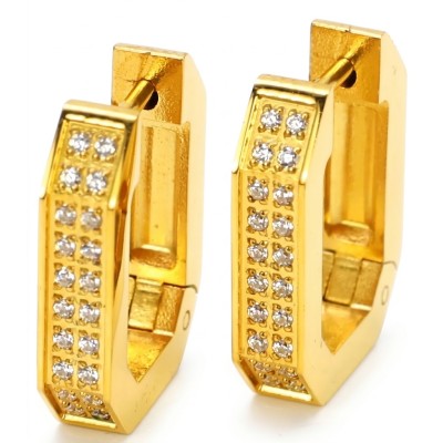 Stainless Steel Gold Hoop Earring with Zircon In Multiple Shapes
