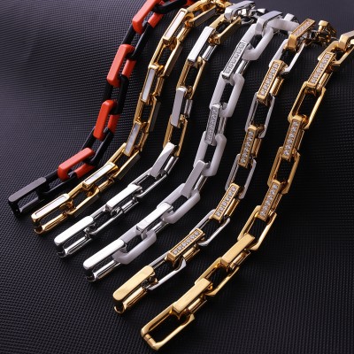 Stainless Steel Paper Clip Link Chain with Two Color Ceramic