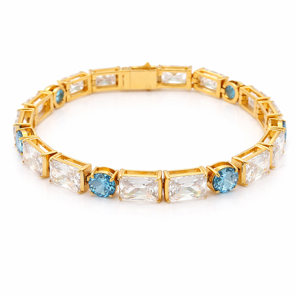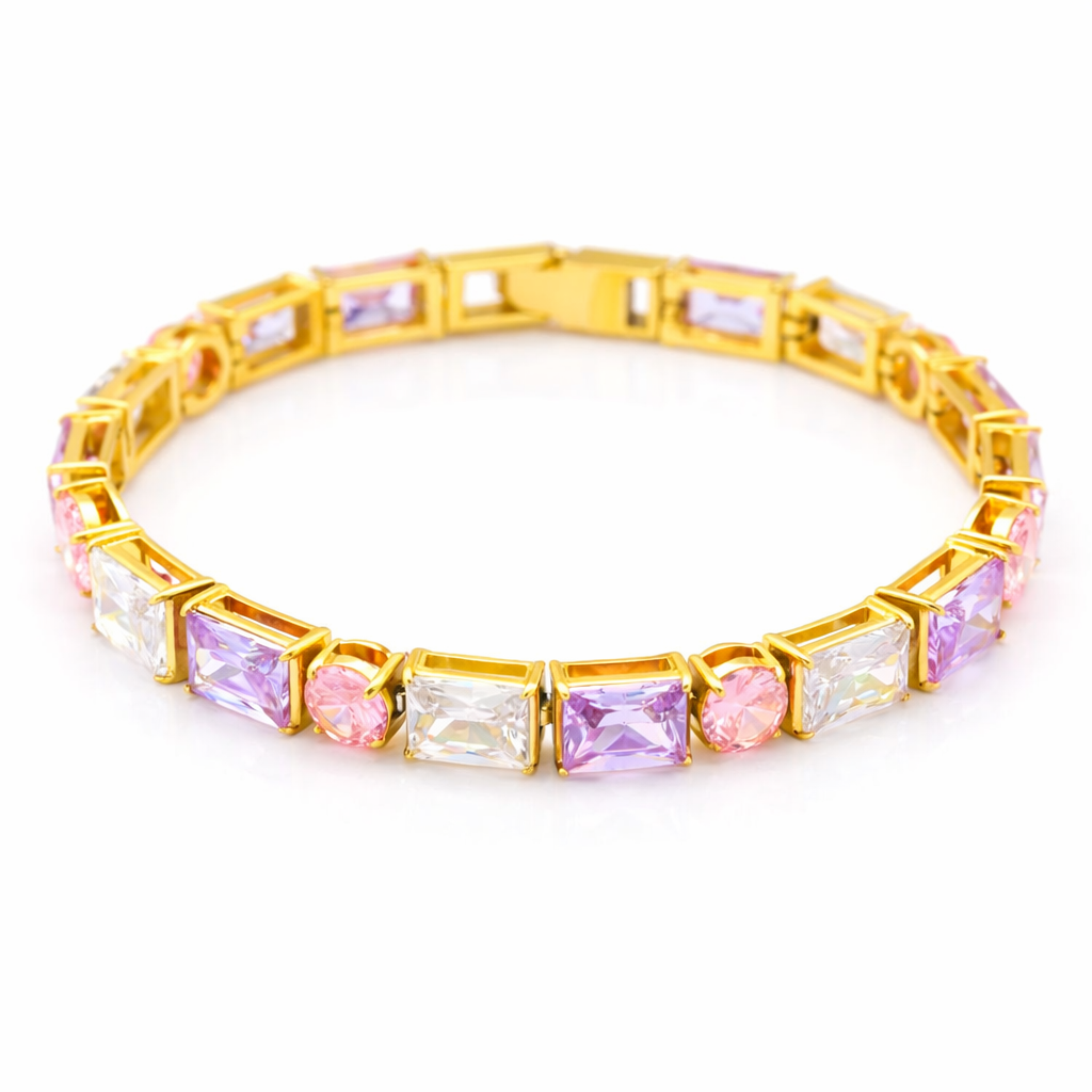 Stainless Steel Multicolored Tennis Bracelet with Round - cut Cubic Zirconia