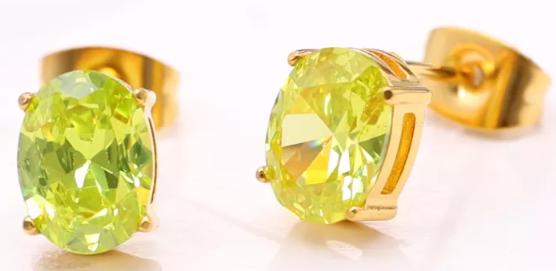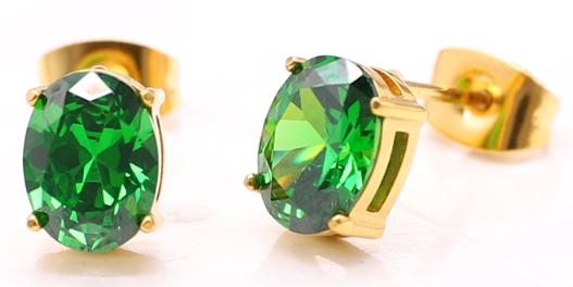 Oval Pink CZ Stud Earrings in Gold Plated Stainless Steel
