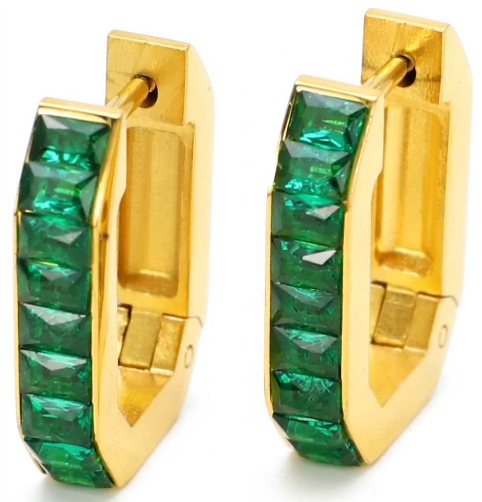 Stainless Steel Geometric Hoop Earrings with 5A Zircon