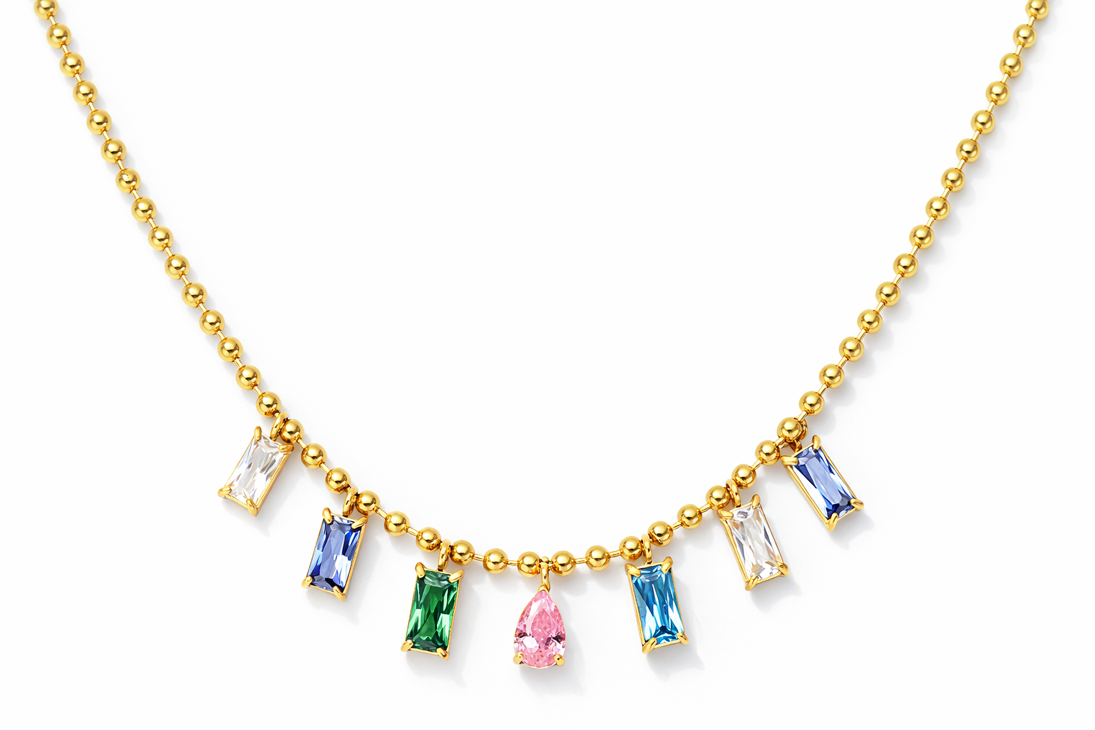 Stainless Steel Pendent Necklace With Colorful Zircon